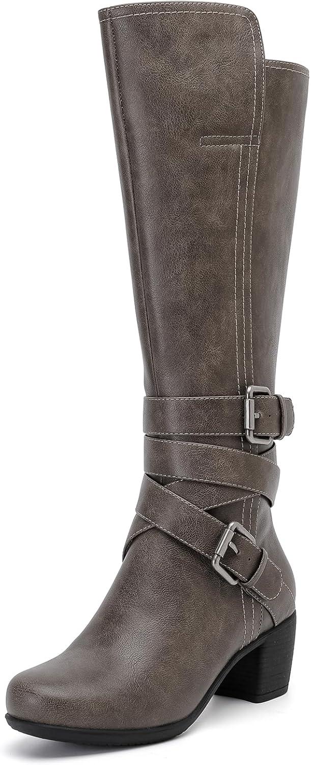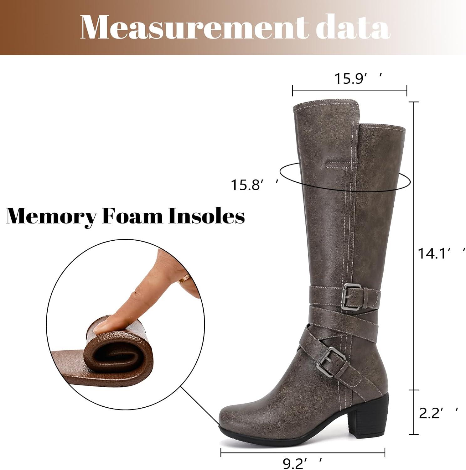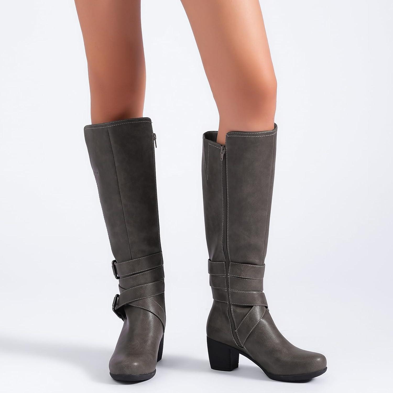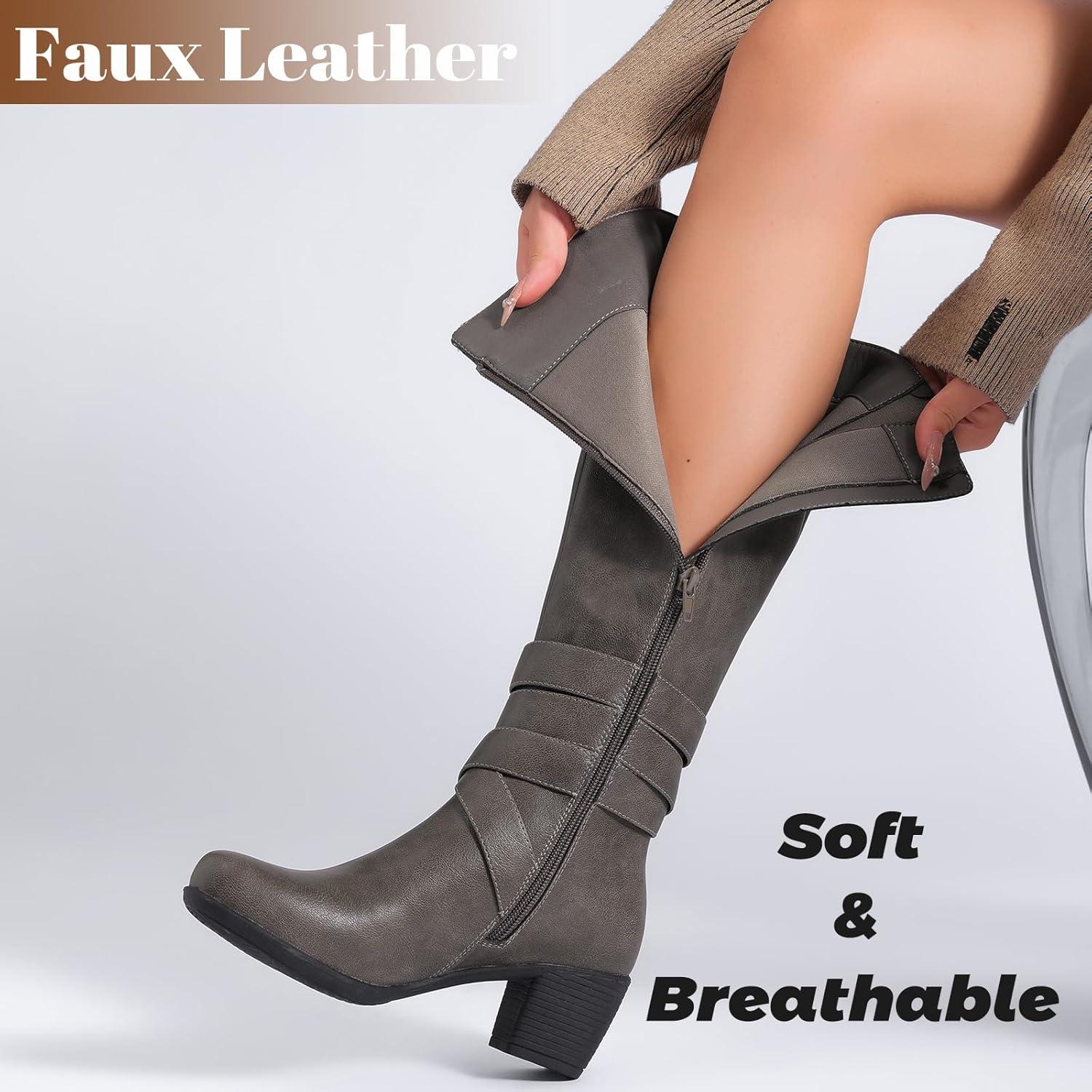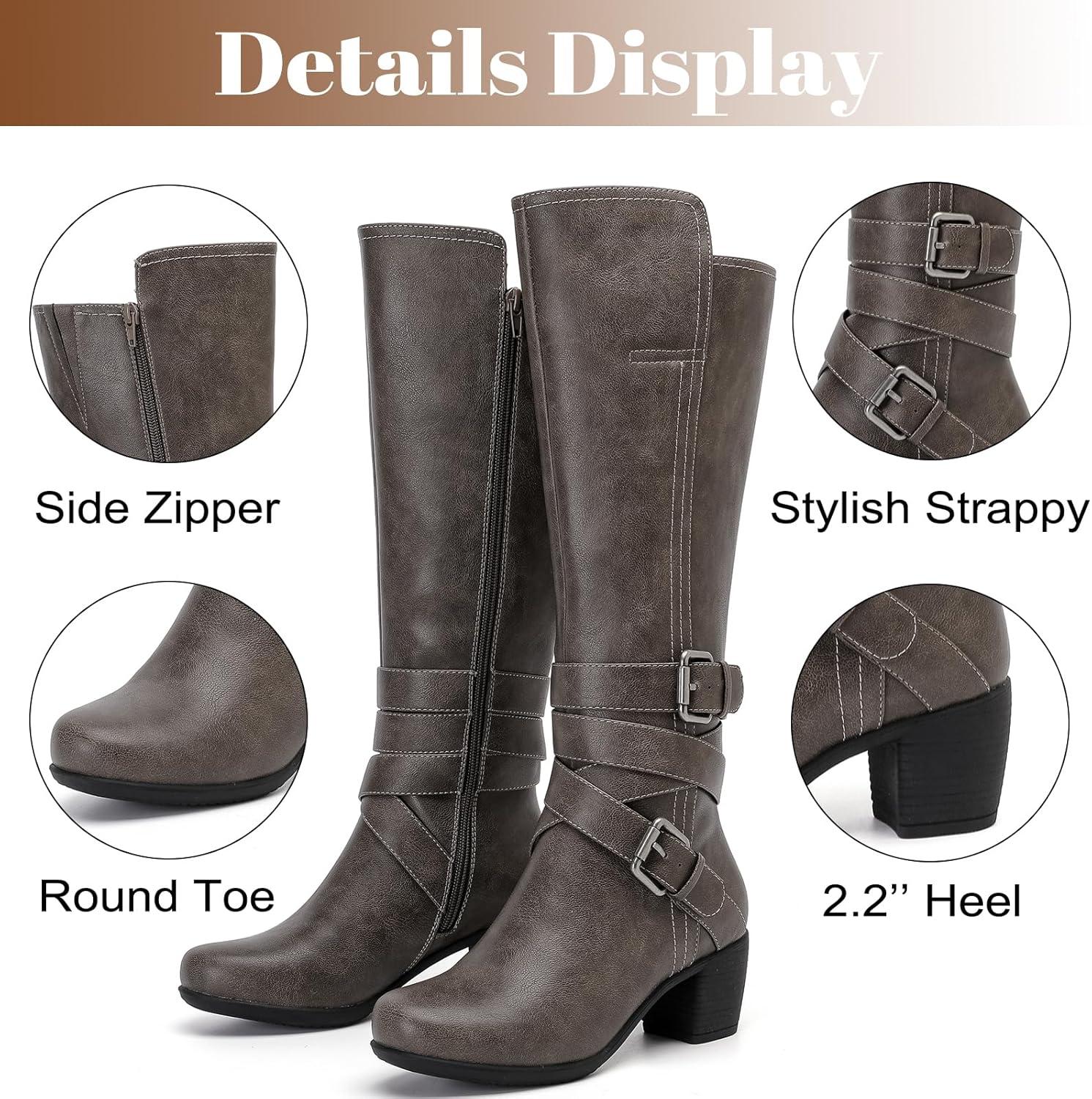 Knee High Boots for Women Chunky Heel Casual Comfort Pointed Toe Boot Womens Fashion Fall Winter Knee-High Boots.(Grey Lpu 303)