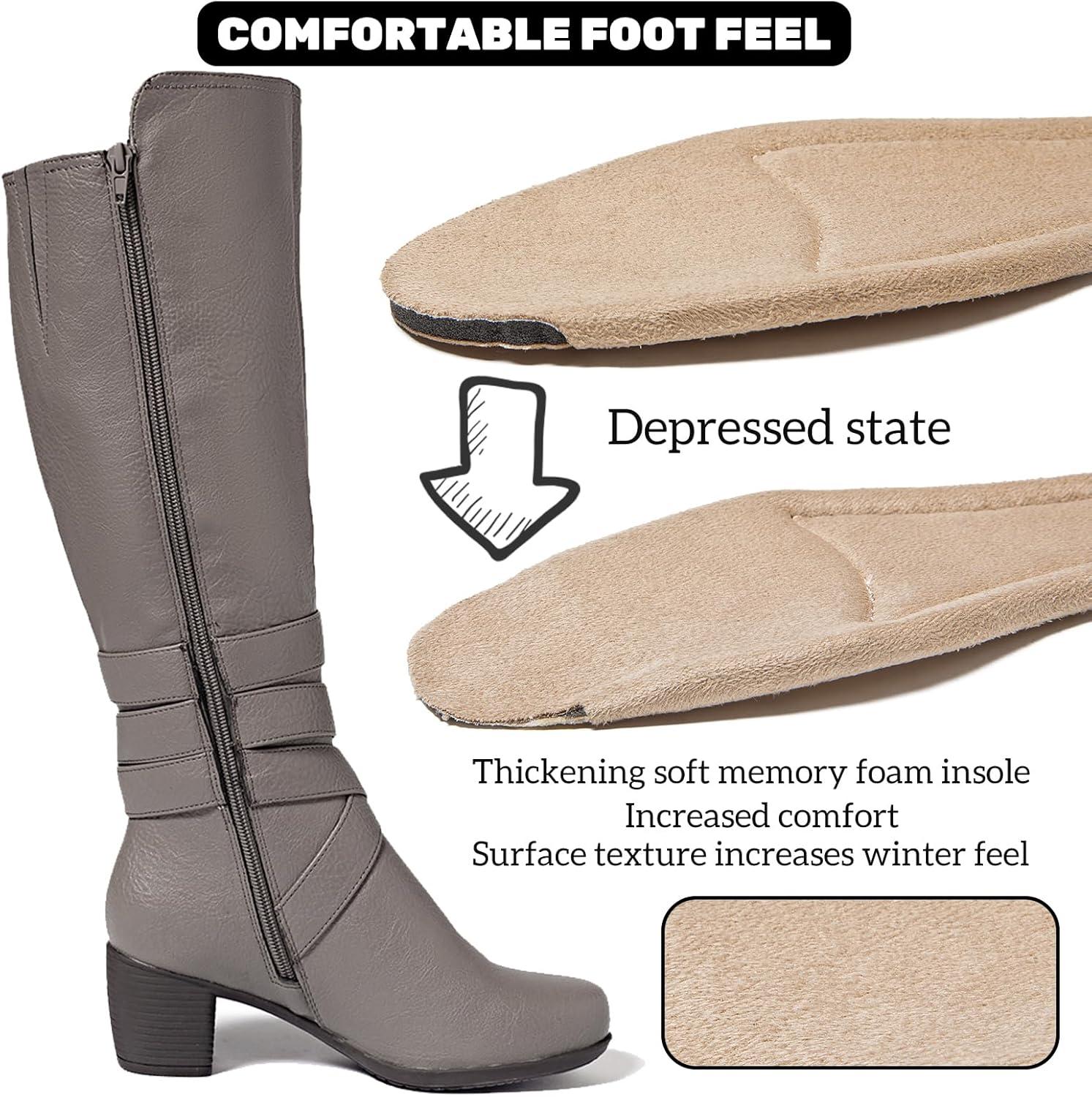 Knee High Boots for Women Chunky Heel Casual Comfort Pointed Toe Boot Womens Fashion Fall Winter Knee-High Boots.(Taupe Pu 303)