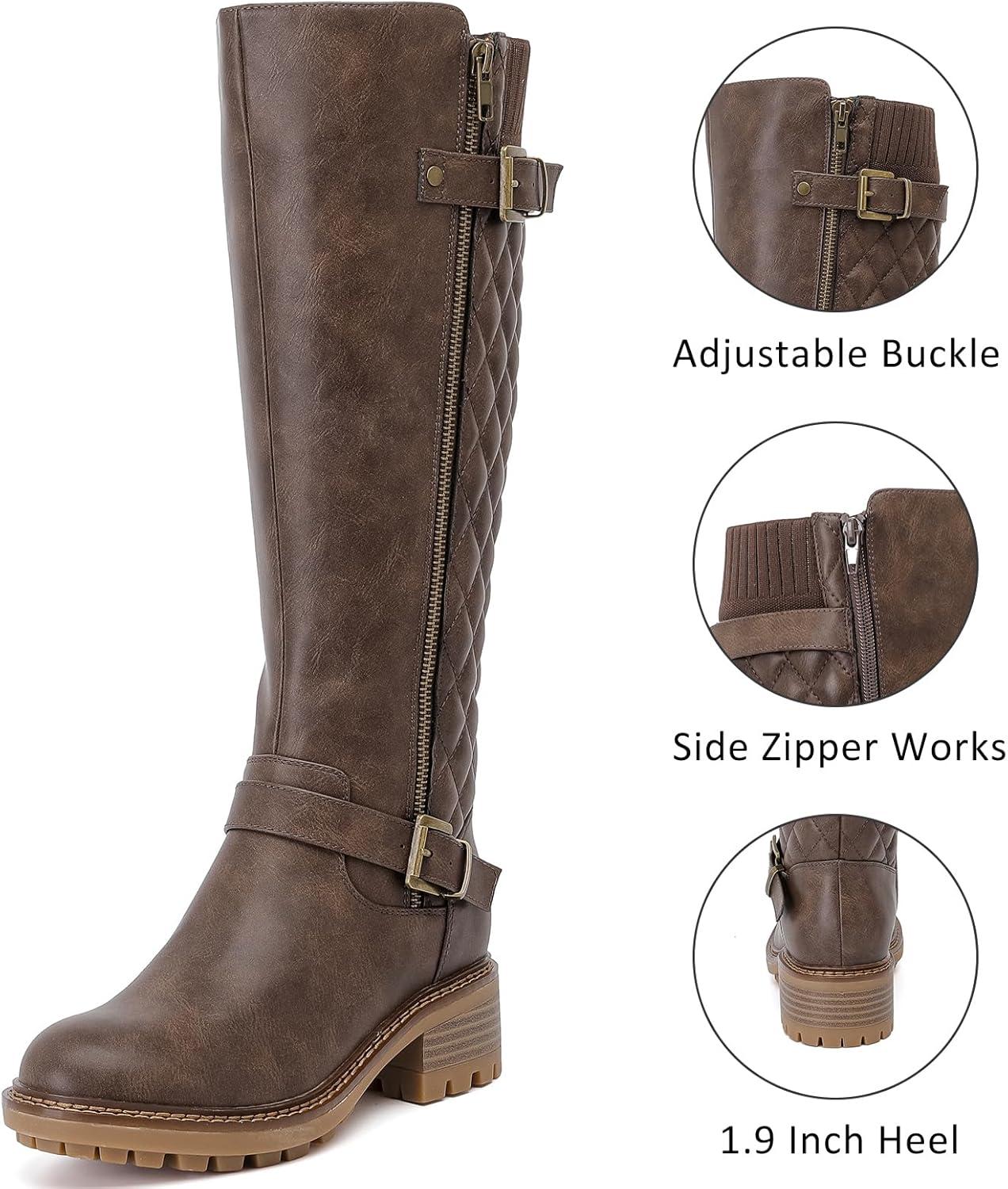 imageKnee High Boots for Women Classic Comfort Riding Combat Boot Round Toe Side Zipper Long Tall Fall Winter Womens BootsBrown Pu 972