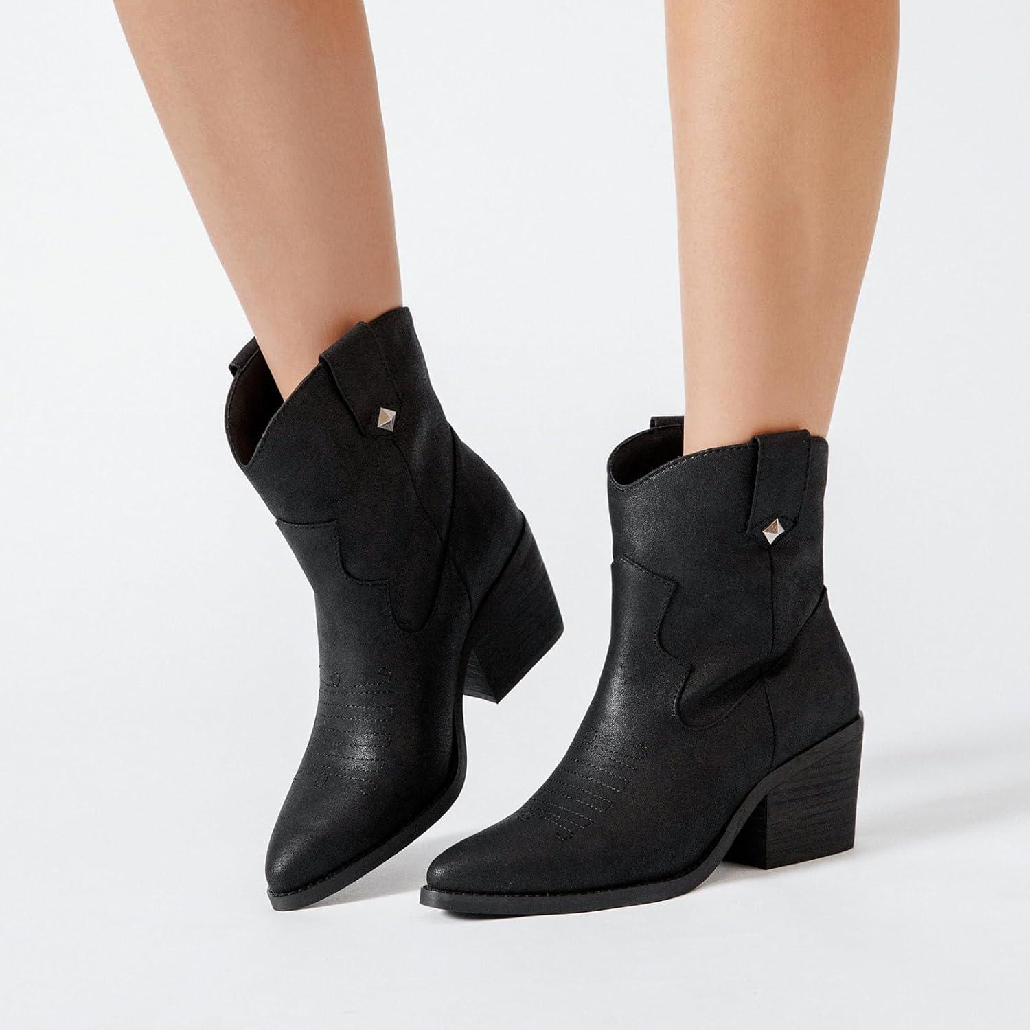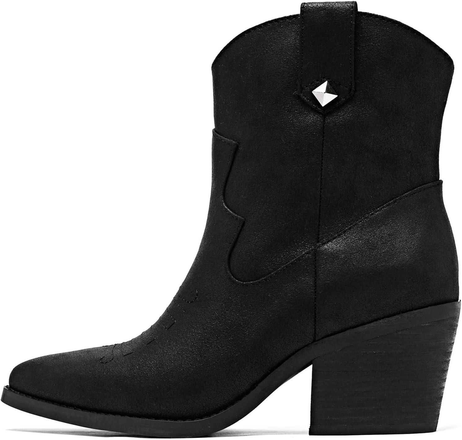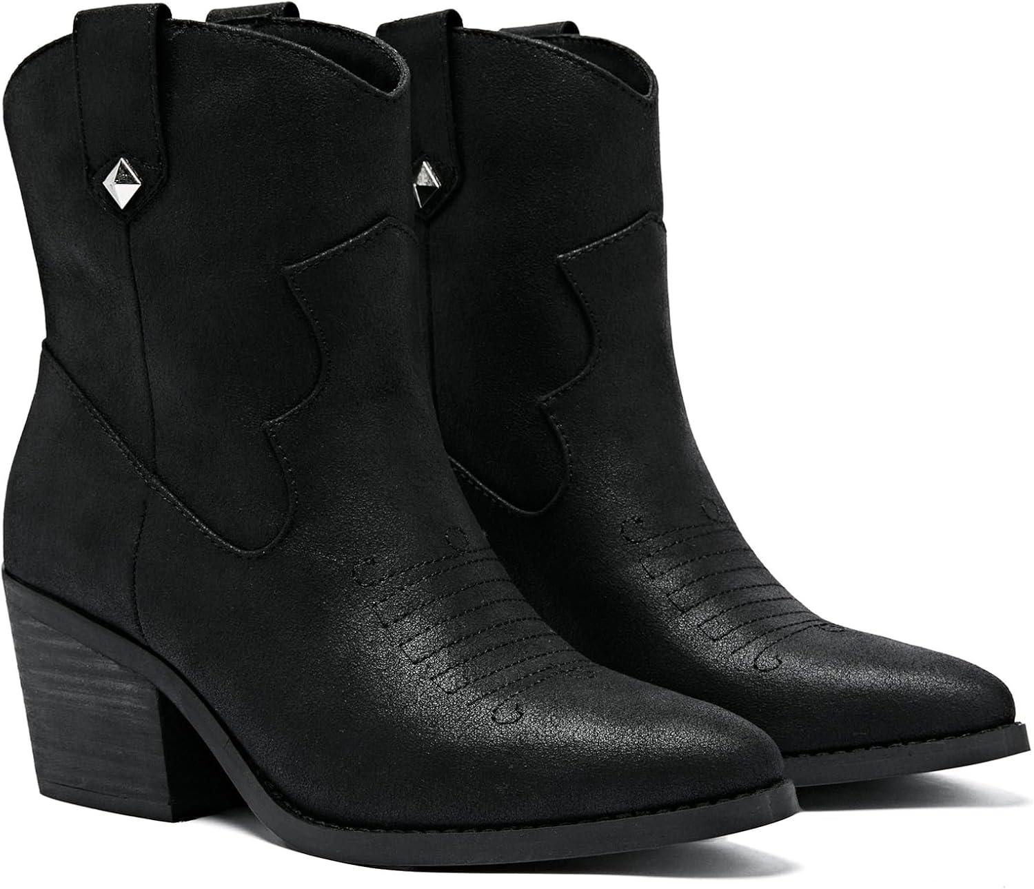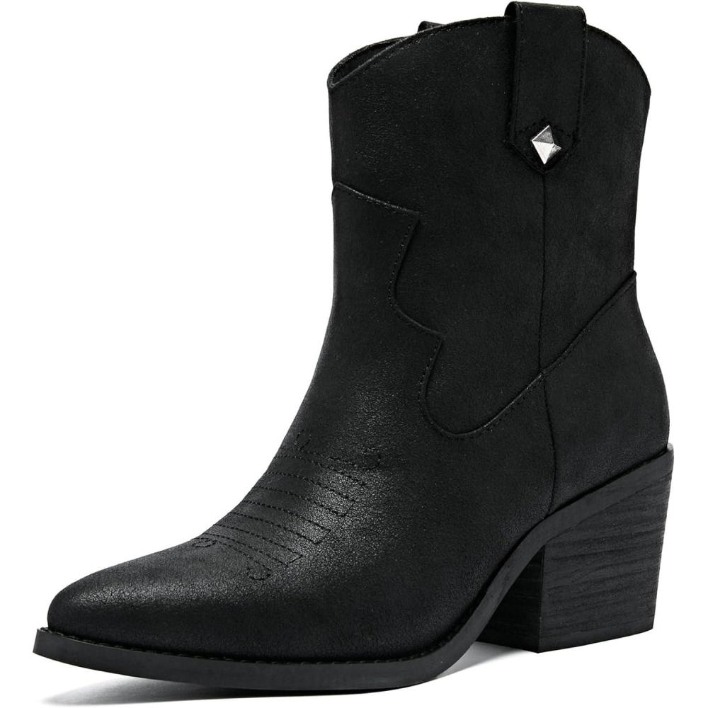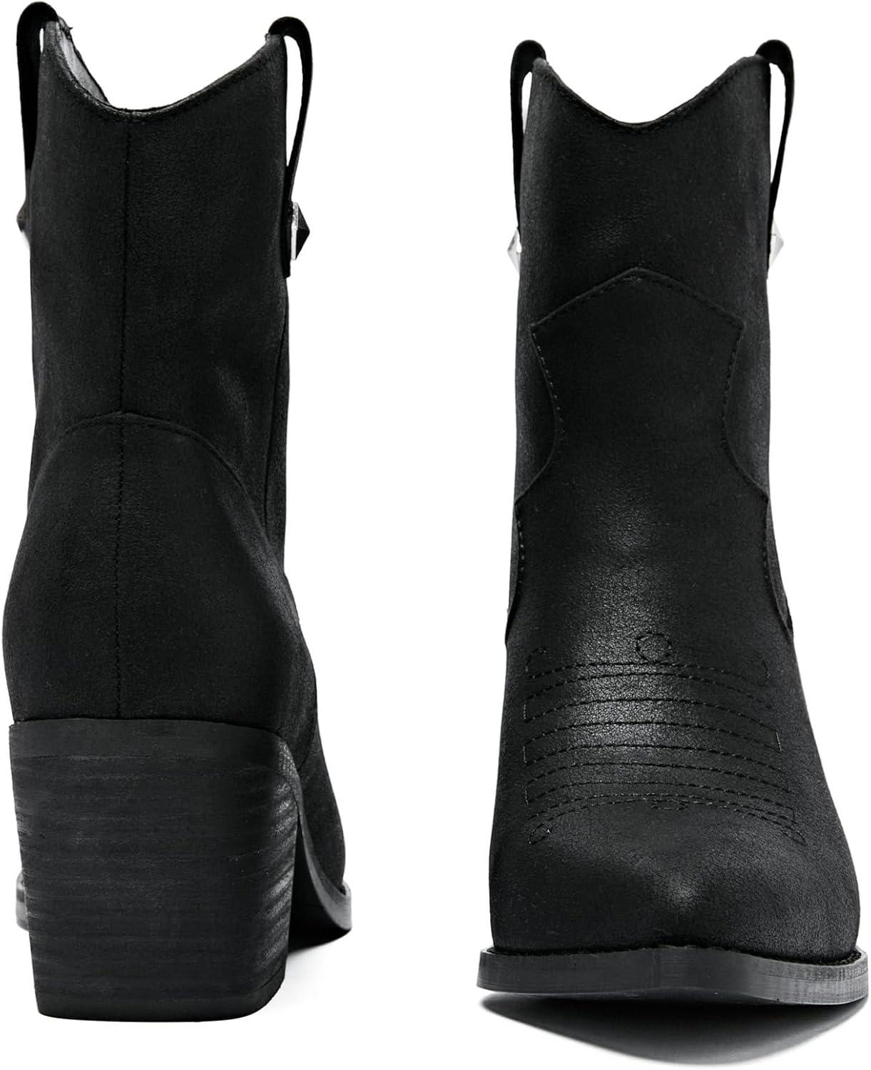 Women’s Ankle Boots Low Chunky Heeled Booties Casual Comfortable Fall Winter Pointed Closed Toe Short Boots for Women.(Black Bmf 976)