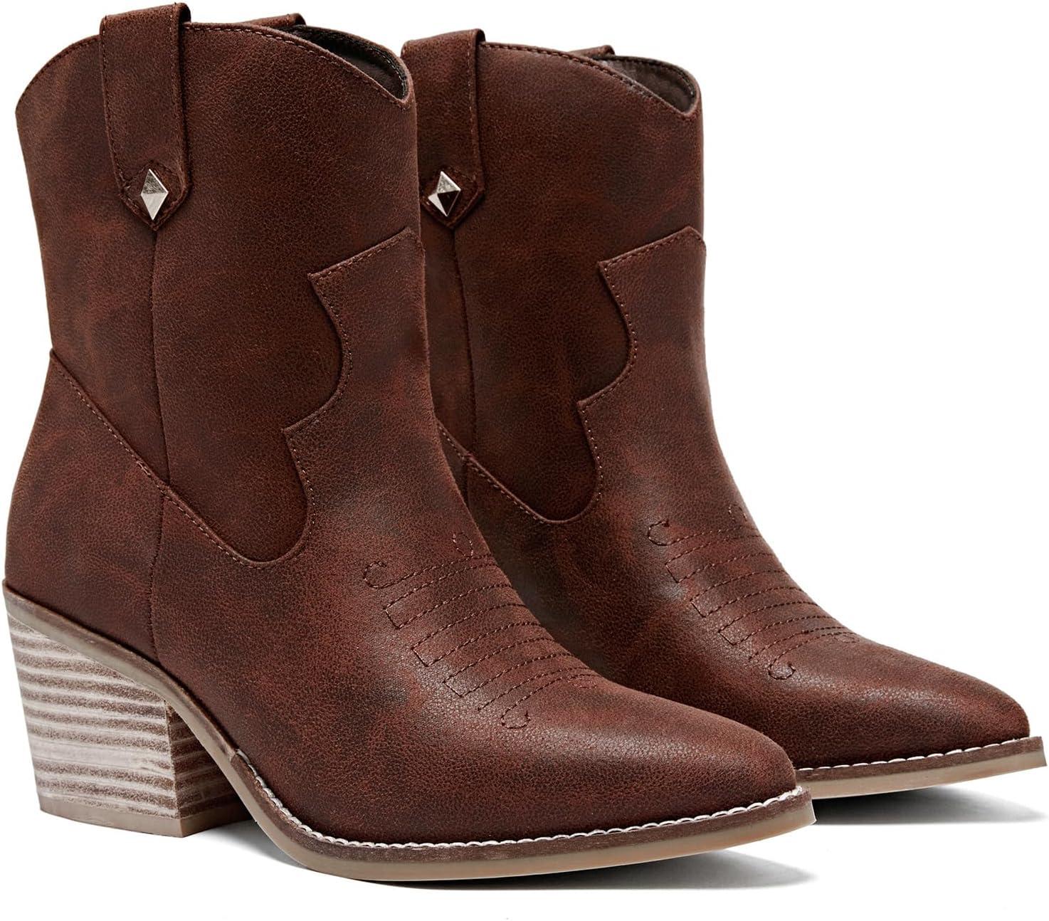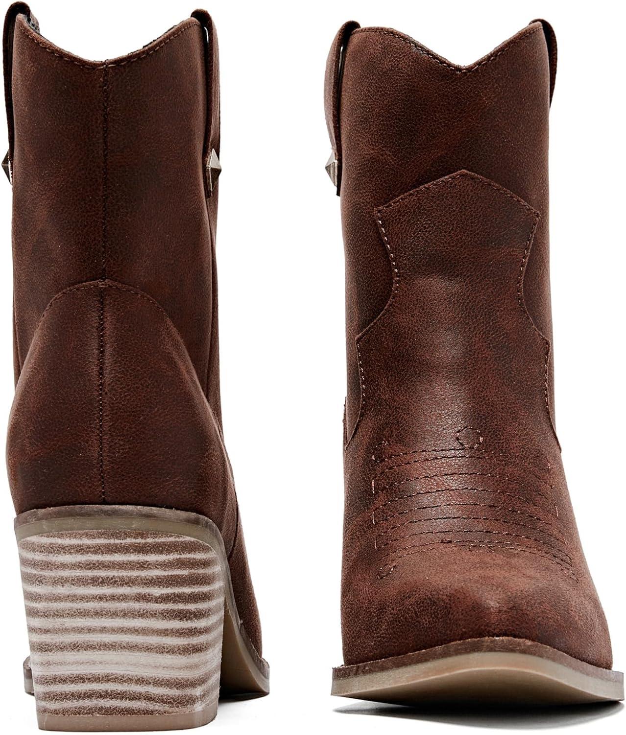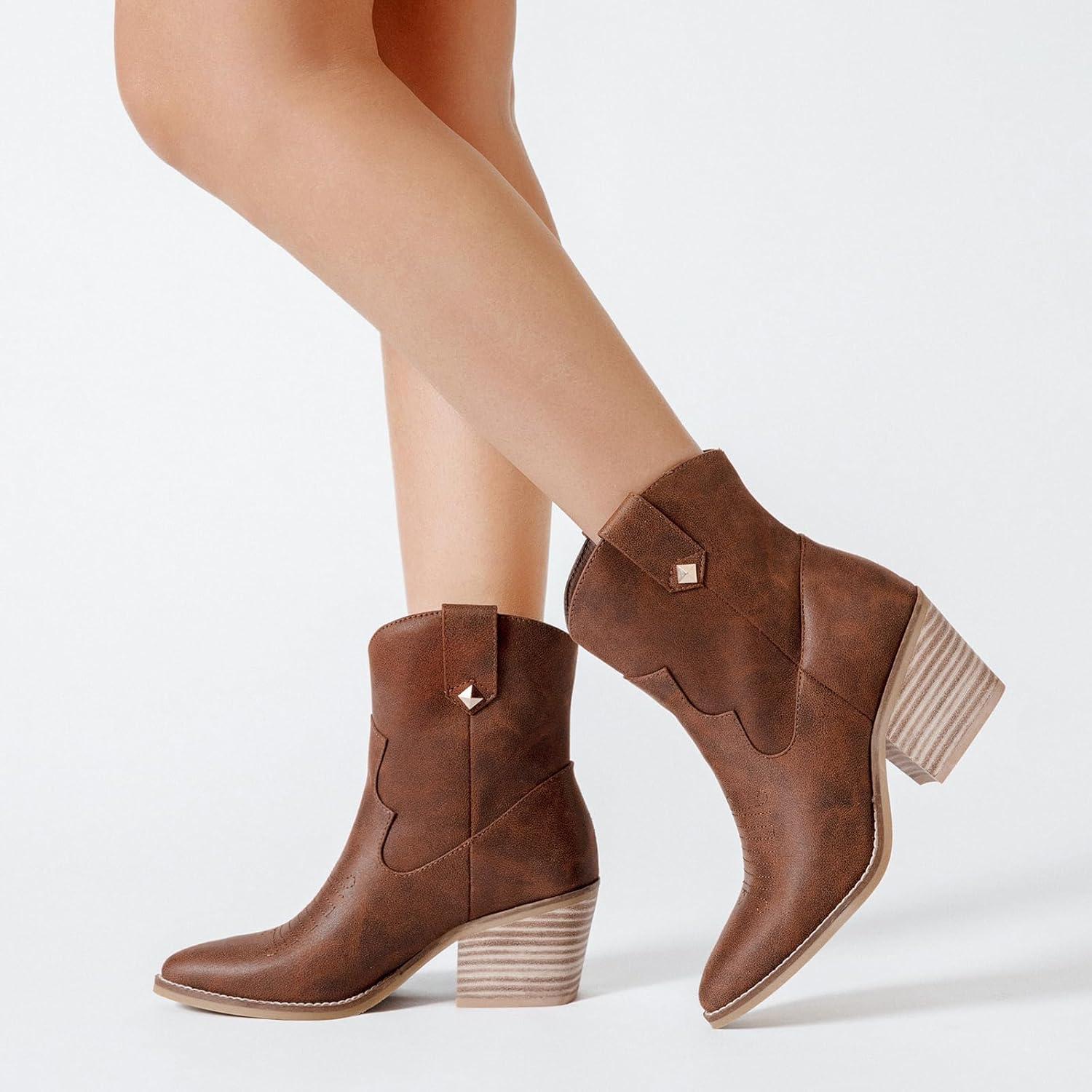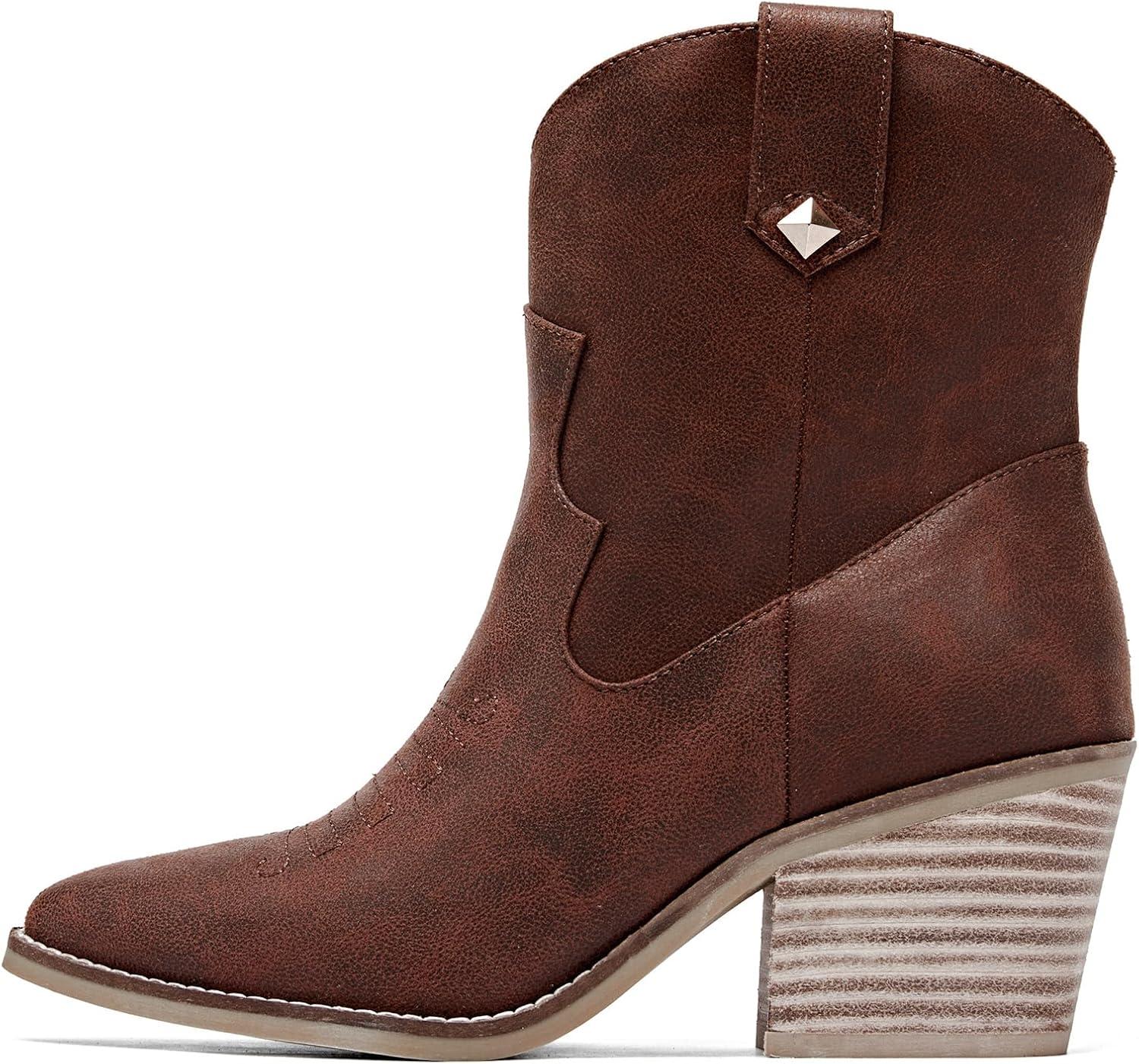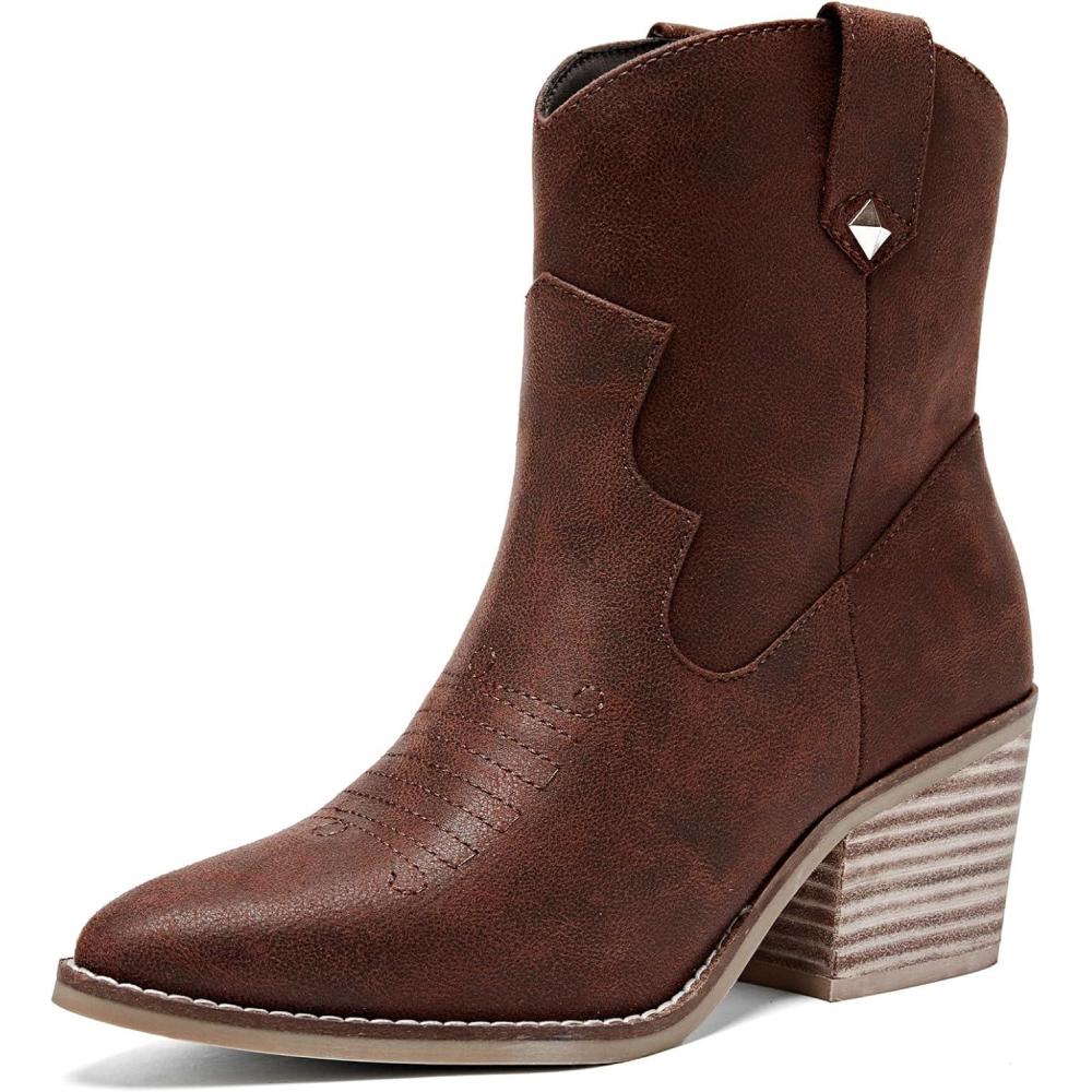 Women’s Ankle Boots Low Chunky Heeled Booties Casual Comfortable Fall Winter Pointed Closed Toe Short Boots for Women.(Brown Bmf 976)