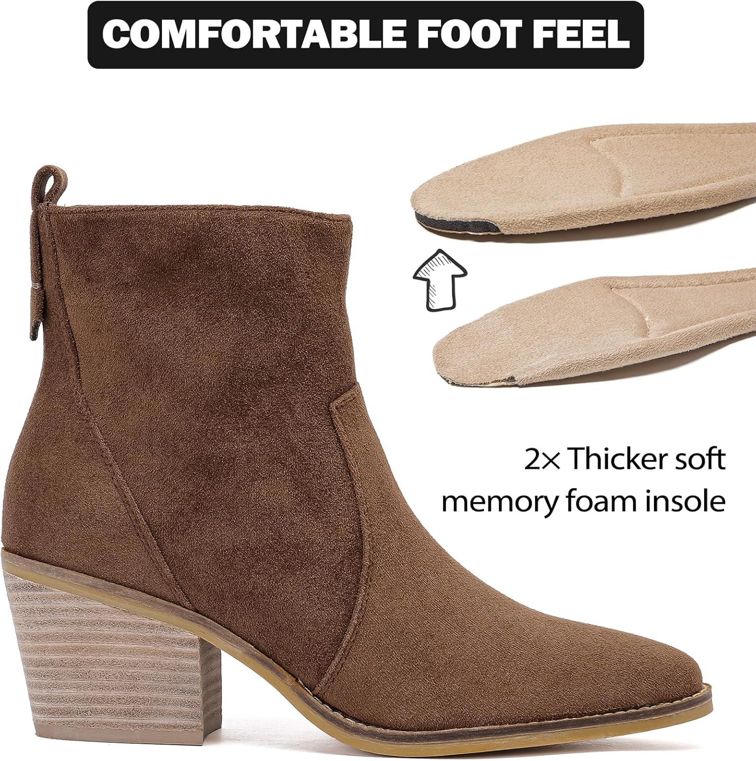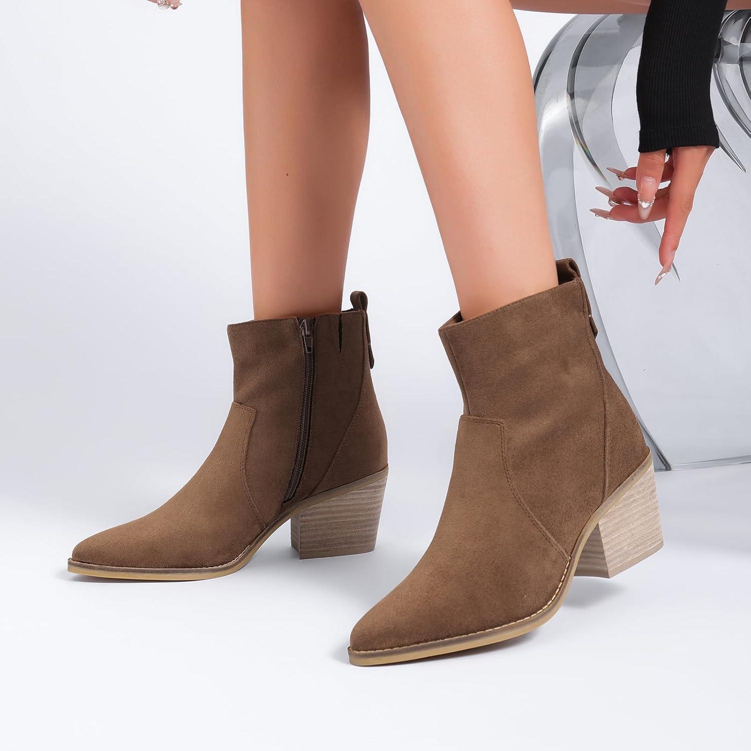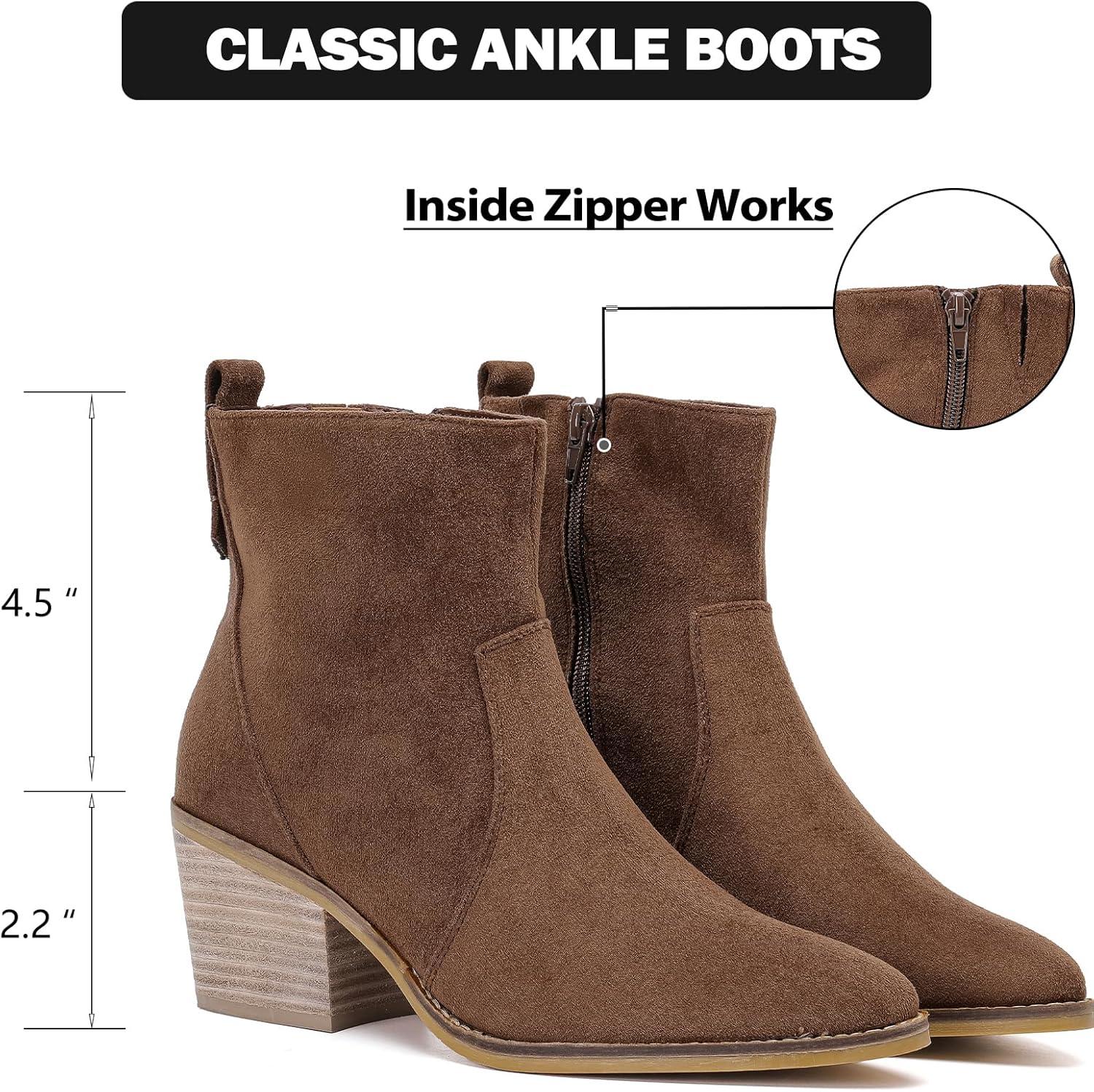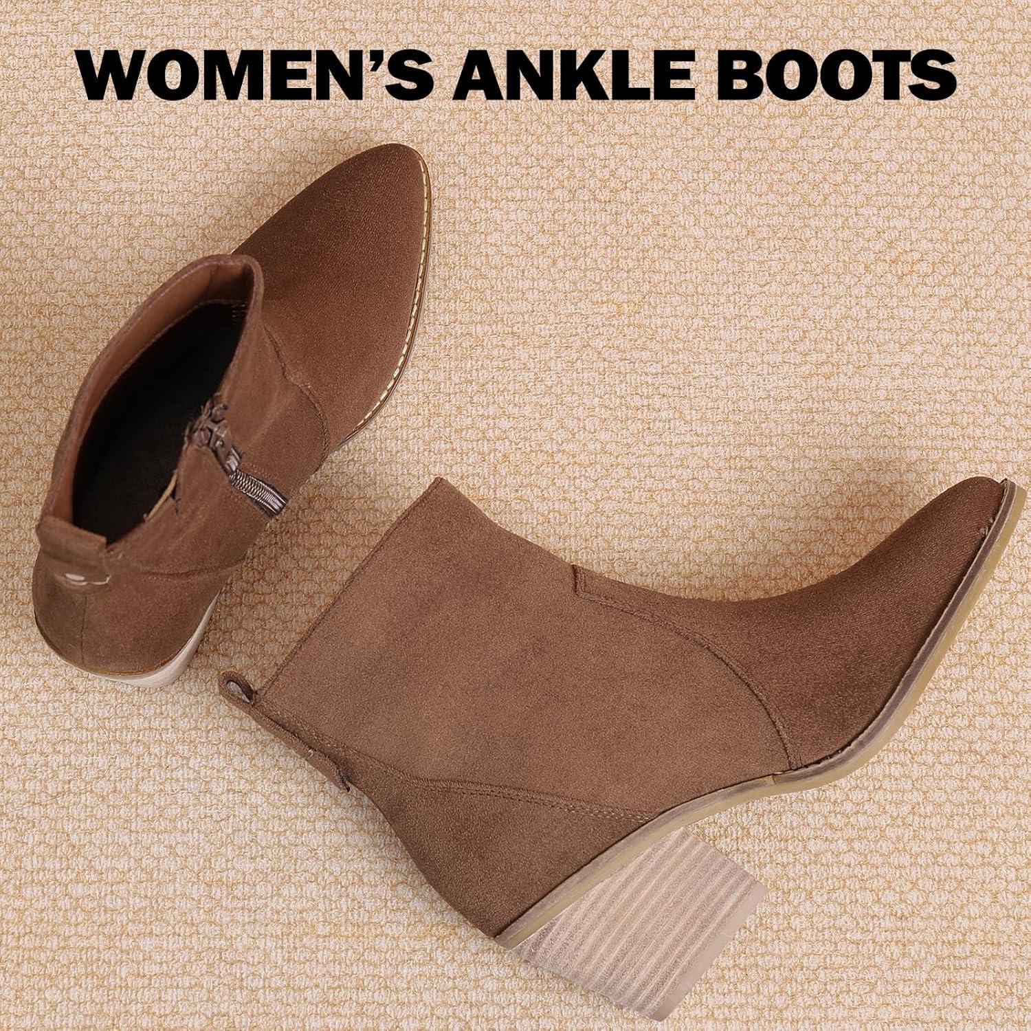 Women’s Ankle Boots Low Chunky Heeled Booties Casual Comfortable Fall Winter Pointed Closed Toe Short Boots for Women.(Brown Mf 970)
