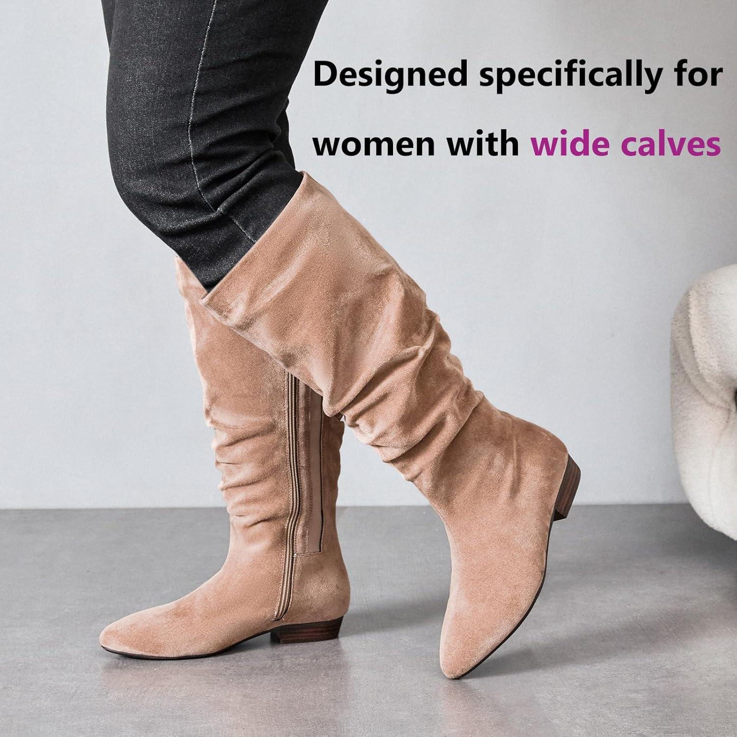 Women’s Extra Wide Calf Knee High Boots True Wide Width Slouchy Ladies Boots, Comfortable Plus Size Tall Long Boots for Women.(Beige Mf 368)