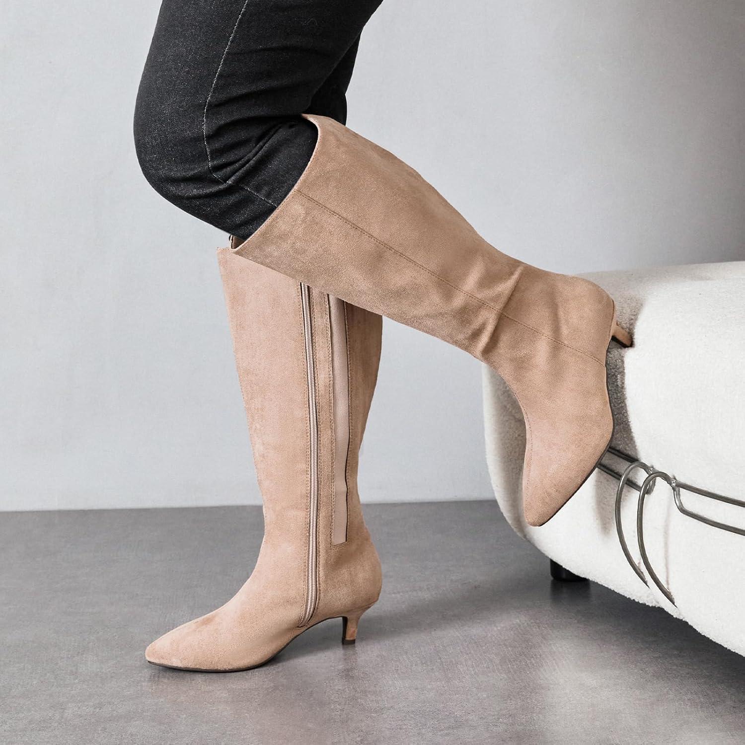 Women’s Extra Wide Calf Knee High Boots True Wide Width Slouchy Ladies Boots, Comfortable Plus Size Tall Long Boots for Women.(Beige Mf 371)