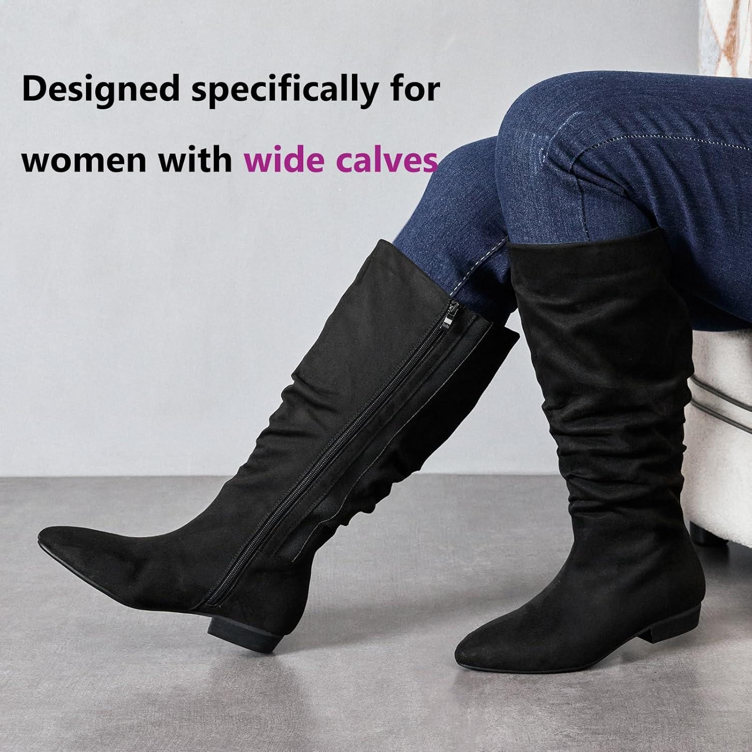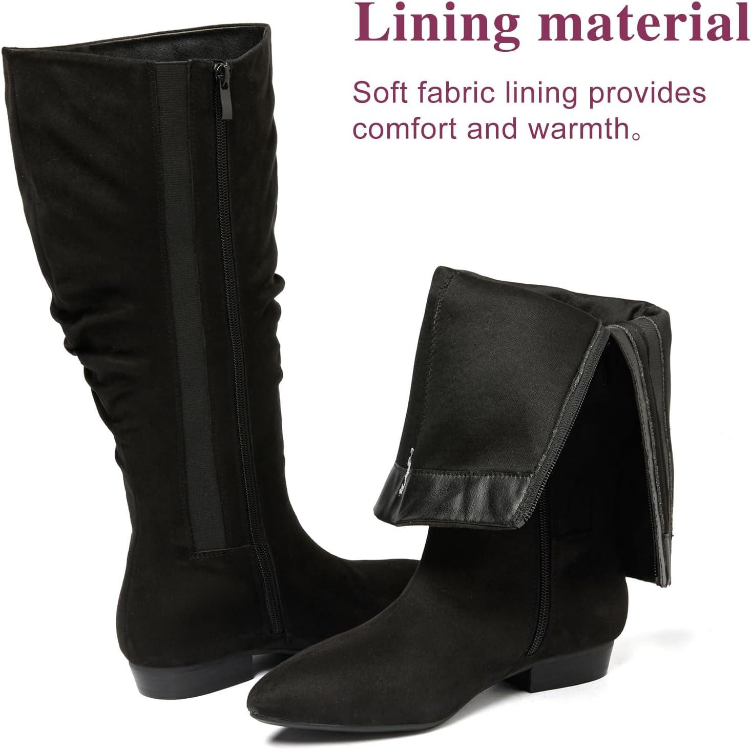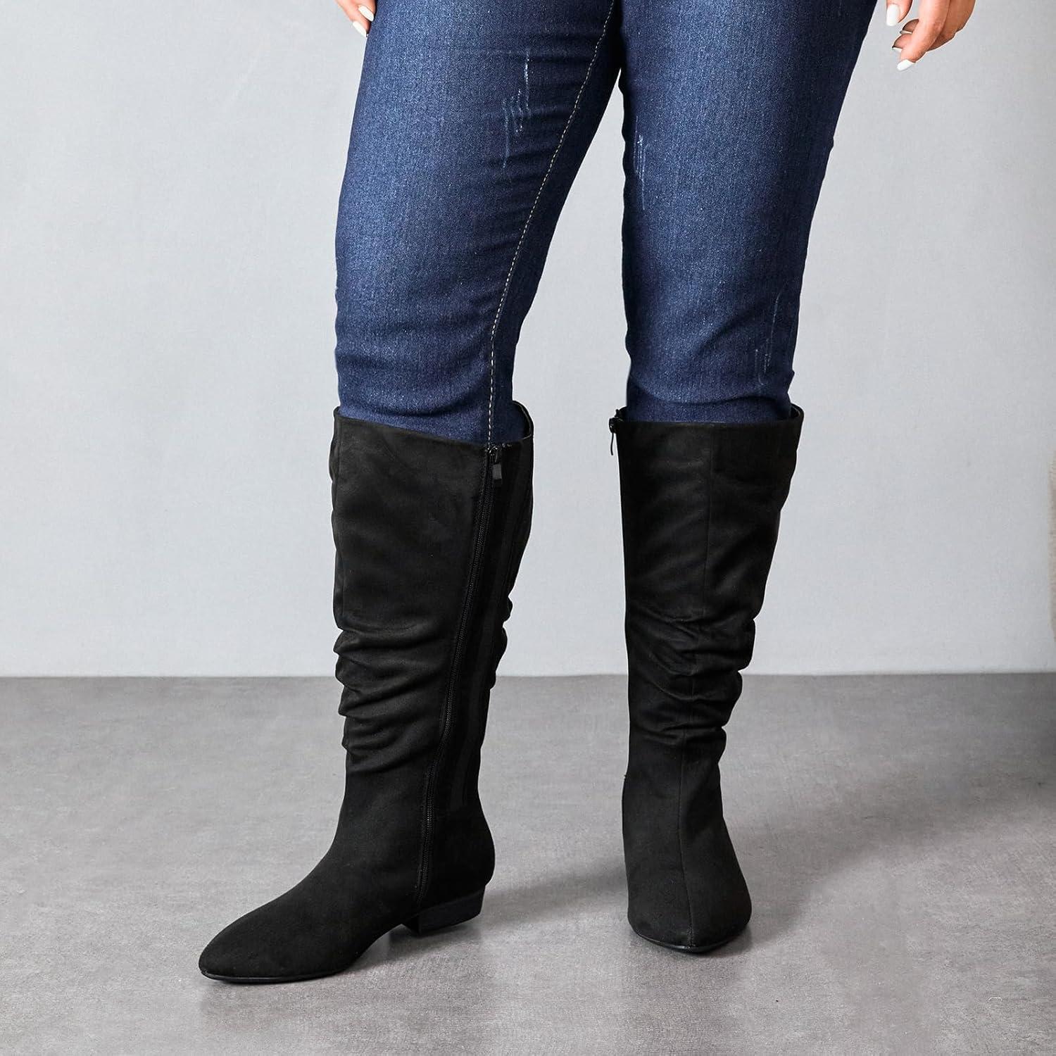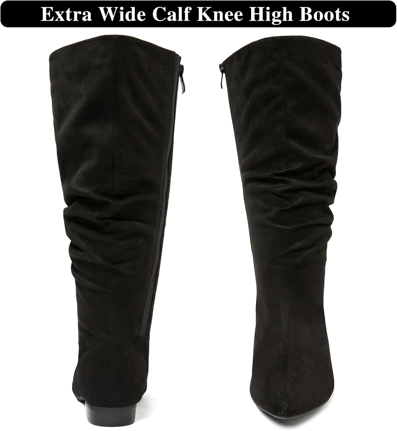 Women’s Extra Wide Calf Knee High Boots True Wide Width Slouchy Ladies Boots, Comfortable Plus Size Tall Long Boots for Women.(Black Mf 368)