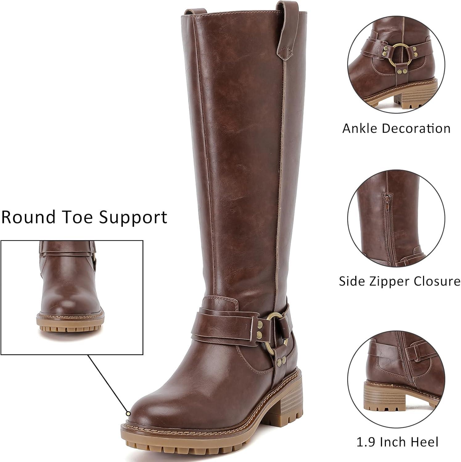Women’s Knee High Boots Classic Comfort Riding Combat Boot Round Toe Side Zipper Long Tall Fall Winter Boots for Women.(D Brown Pu 972)