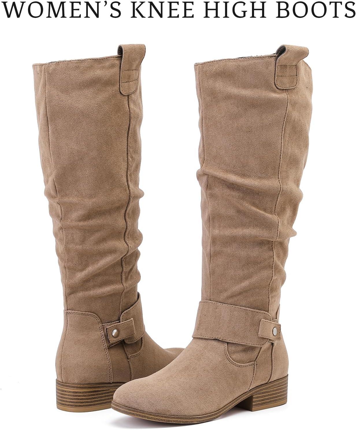 Women’s Knee High Boots, Wide Calf Chunky Block Low Heel and Slouchy Pointed Toe Winter Long Boots for Women.