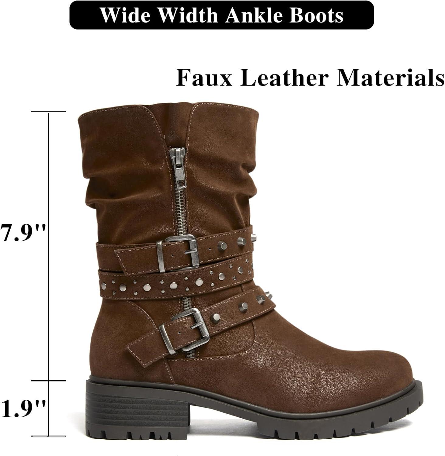 imageWomens Wide Width Ankle Boots True Plus Size Wide Foot Flat Slouchy Booties Comfort Riding Combat Rivet Short Boots for WomenBlack Pu 372