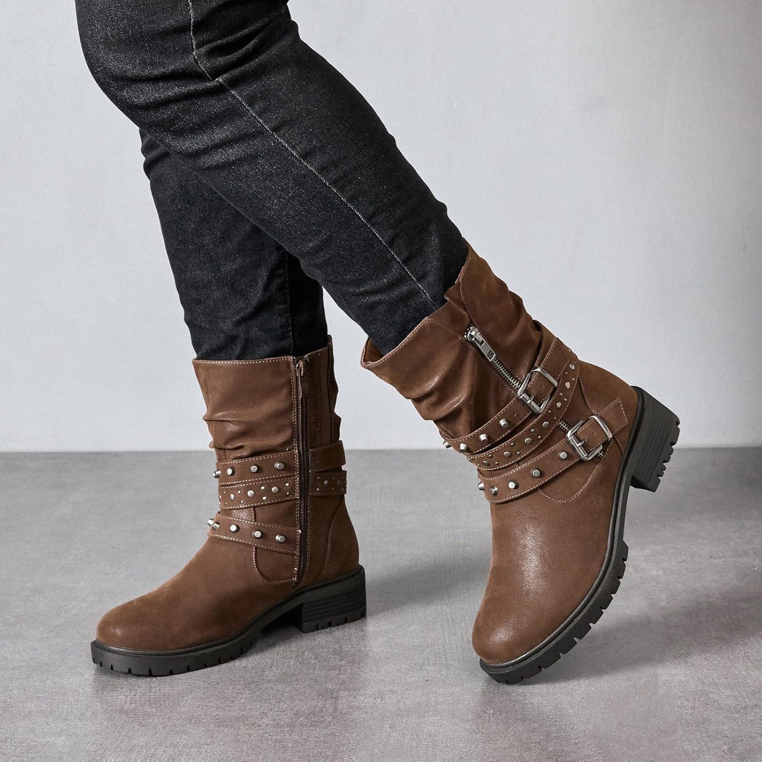 Be the first to review “Women’s Wide Width Ankle Boots True Plus Size Wide Foot Flat Slouchy Booties Comfort Riding Combat Rivet Short Boots for Women.(Brown Pu 372)”