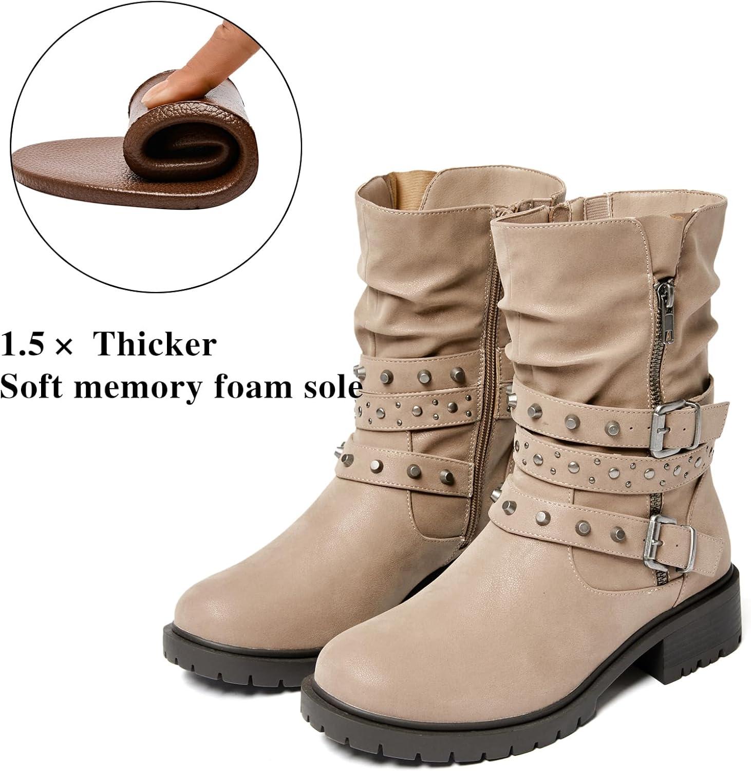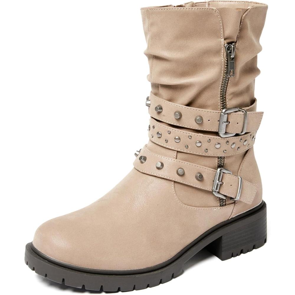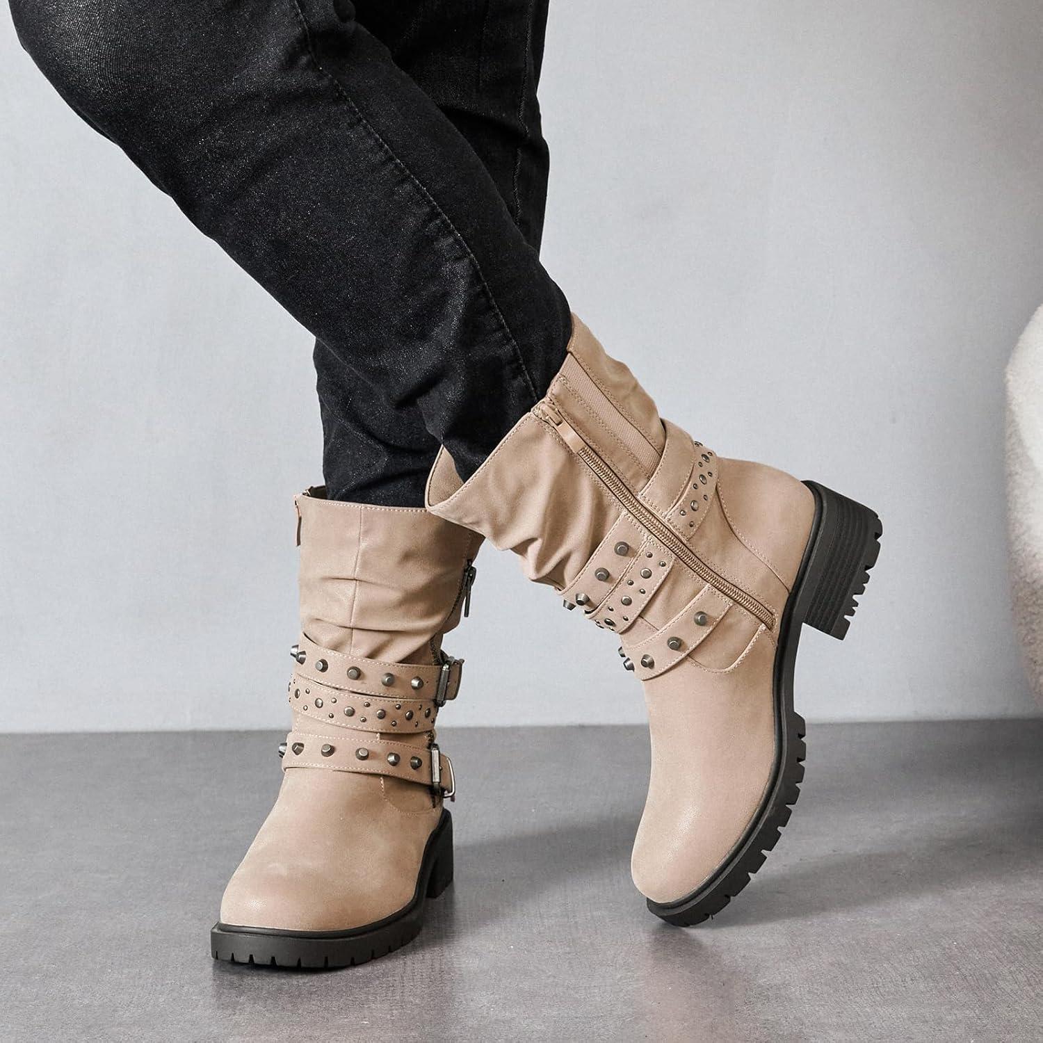 Be the first to review “Women’s Wide Width Ankle Boots True Plus Size Wide Foot Flat Slouchy Booties Comfort Riding Combat Rivet Short Boots for Women.(Taupe Pu 372)”